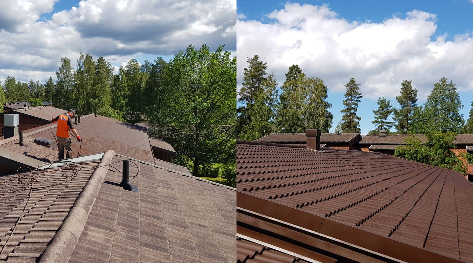 Tiilikaton pesu ja pinnoitus.